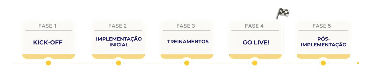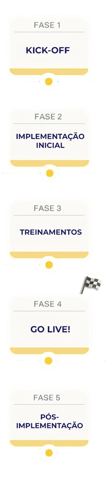 FASE 4 - GO LIVE: Período que o sistema é colocado no ar para uso por todos os usuários, nesse período a atenção da nossa equipe é redobrada.